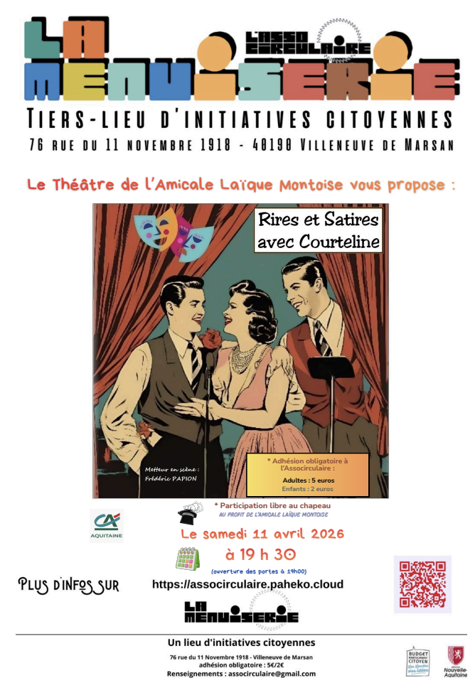 🎬 La compagnie de l’Amicale Laïque de Mont-de-Marsan vous propose : "Les Boulingrins", "La Peur des Coups", "Le petit Malade", "Monsieur Badin"